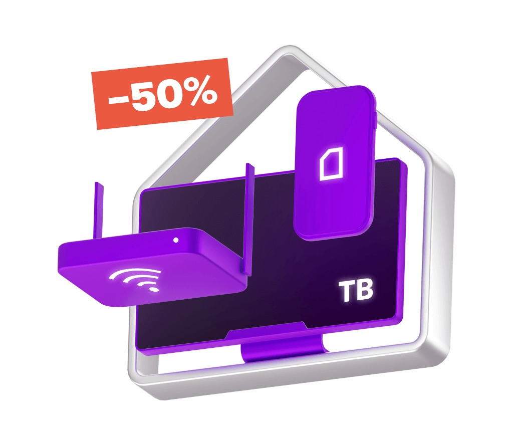 С 17 января 2024 по 17 июня 2024 года вы можете получить на 60 дней скидку 50% на абонентскую плату при первом подключении тарифов: